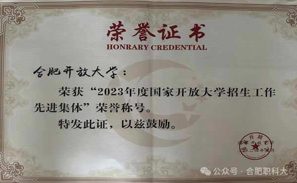 在近日召开的安徽开放大学质量保证委员会暨2024年秋季招生工作会议上,合肥开放大学(合肥职工科技大学)首次获得国家开放大学招生先进集体荣誉称号,被安徽开放大学授予“办学先进单位”“招生工作突出贡献奖”荣誉称号,有1人获评国家开放大学招生工作优秀个人,4人获评安徽开放大学招生工作优秀个人。